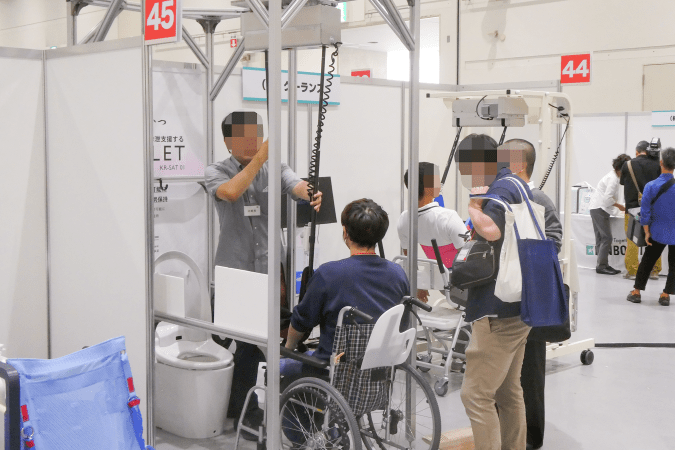 イベントでは介護ソフトや見守り、車いすなどの最新の福祉機器が展示されており、機器の導入を検討している福祉・介護事業者に加えて、介護を学ぶ専門学生、自らが使用する機器を興味深く見られる人など、多くの参加者が説明を受けたり、体験されたりする姿が見受けられました。
