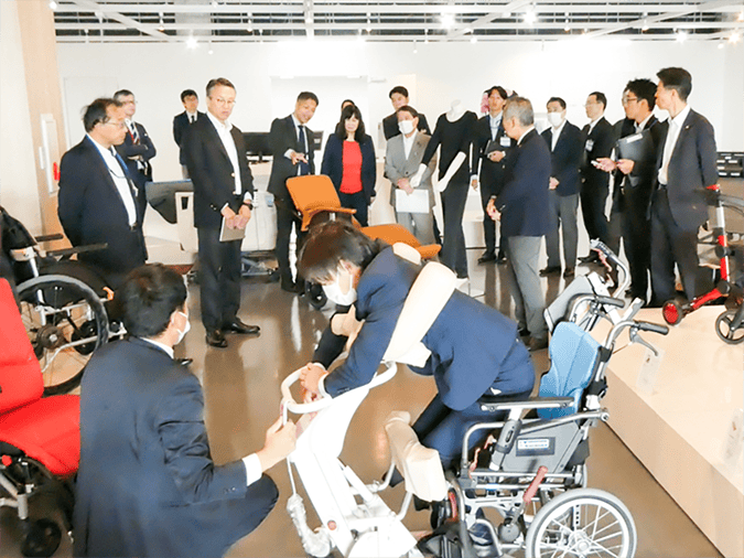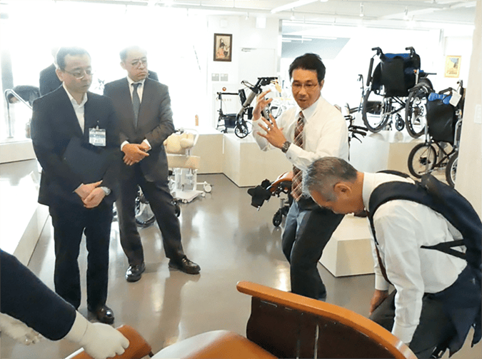 また、エコールトータルケアセンターの展示品の体験を行い、生産性向上に必要となるテクノロジーについての説明を行いました。